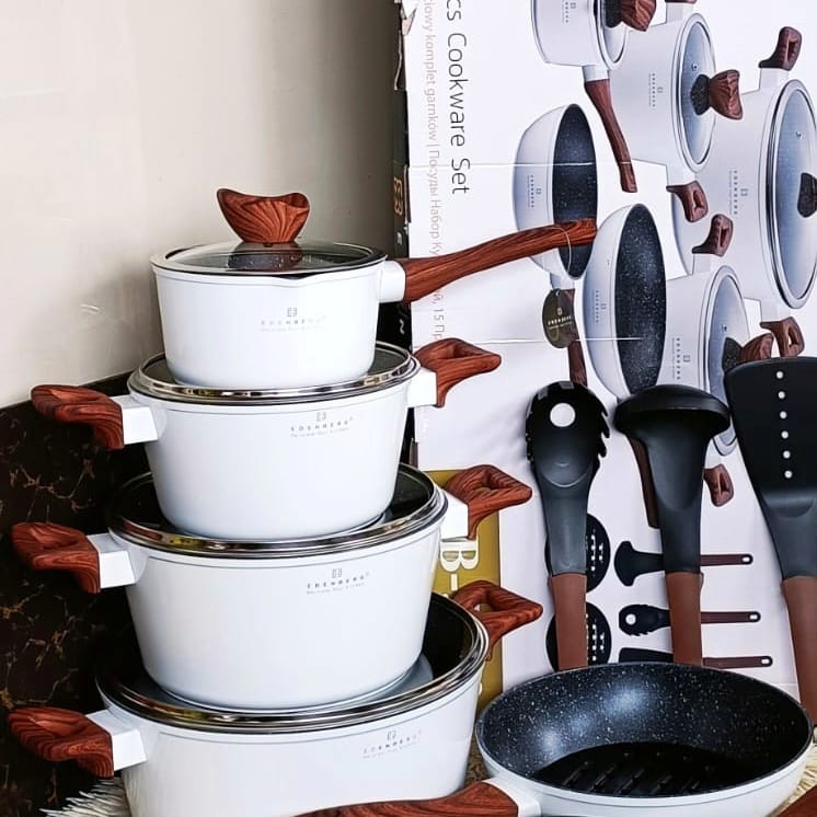 The aesthetic touches (such as marble coating, varied colour options, wood-style handles) make it not only functional but also visually appealing in a modern kitchen. For households looking for a full-kit cookware package that covers almost everything they need in one purchase, this set offers strong value.